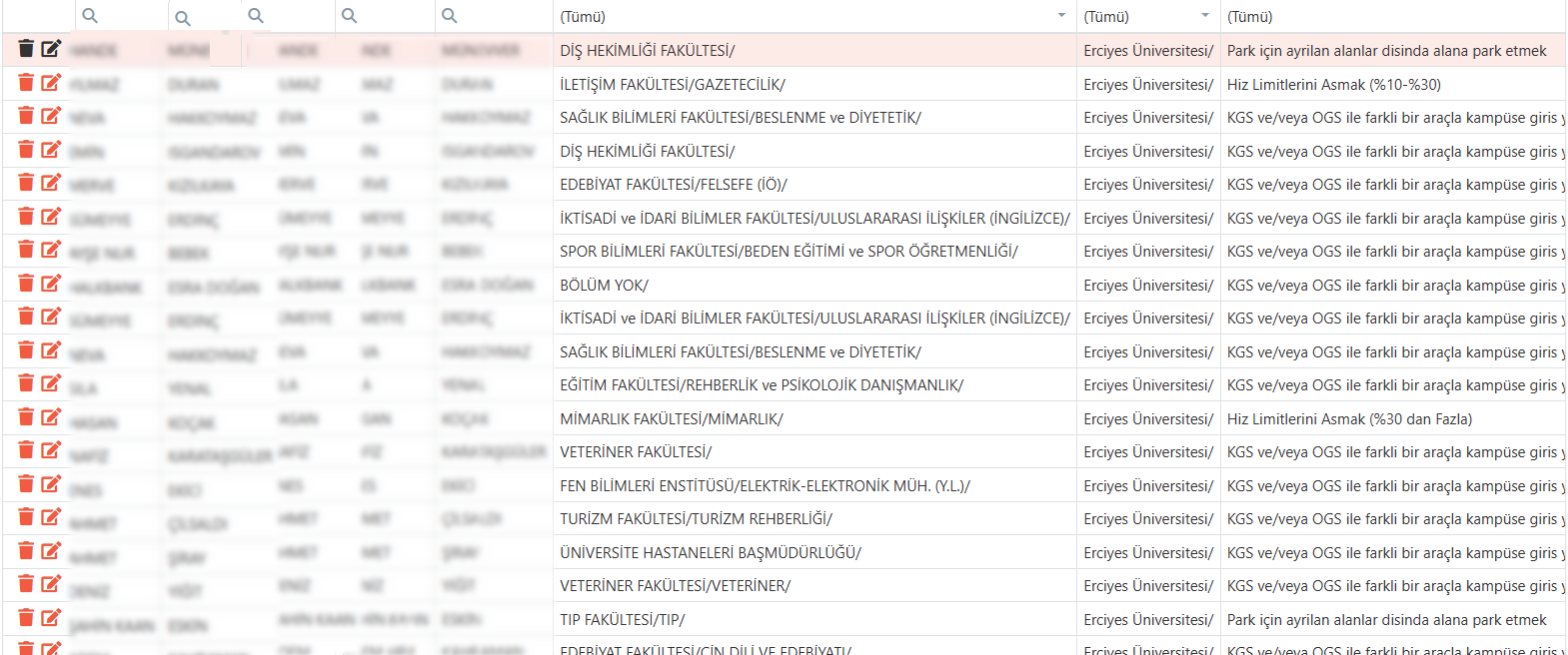 Kurallar bazlı ceza kayıtları; arıza talepleri ve takip modülü ile bakım süreçleri yönetilir.