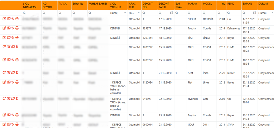 Giriş yapan araç bilgileri, bilgilendirme mesajları ve SMS entegrasyonu ile iletişim sağlanır.