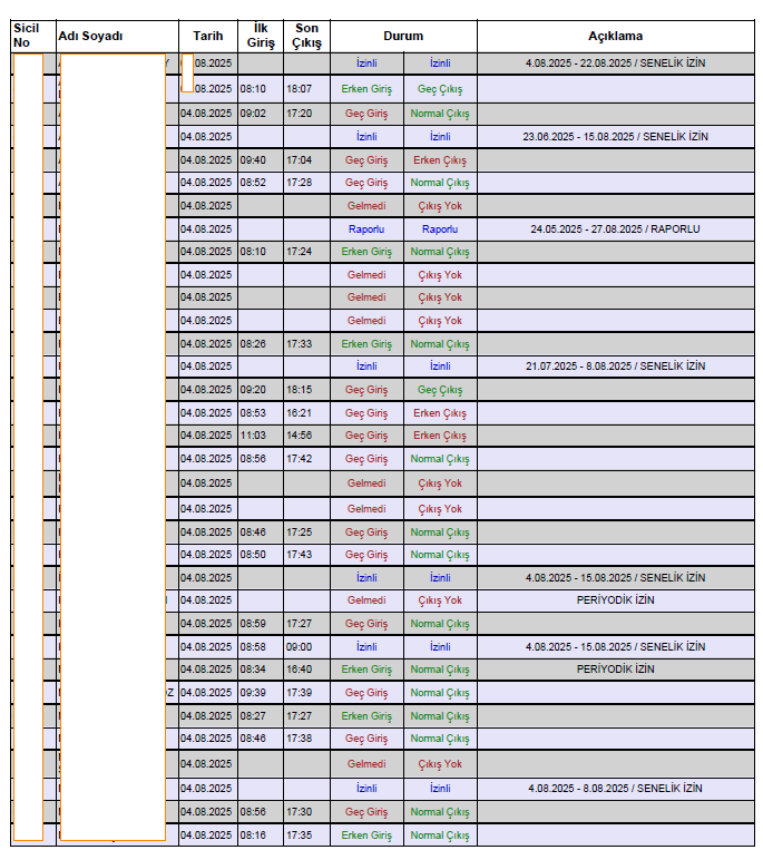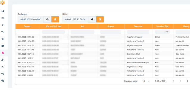 Tüm geçişler detaylı loglanır; günlük PDKS raporları ve kişiye/birime göre filtrelenmiş raporlar alınır.